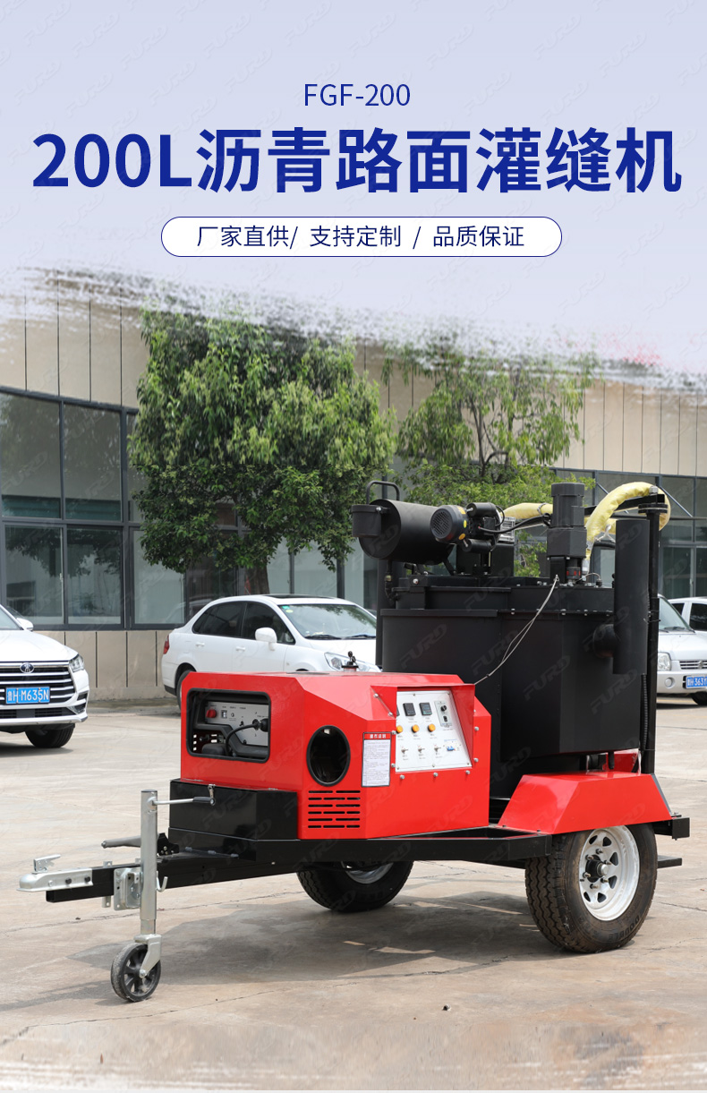瀝青灌縫機,使用原料為瀝青灌縫膠,主要用于瀝青路面不規(guī)則裂縫、混凝土路面、橋梁伸縮縫、上下水道、煤氣管埋設機鋪裝路面的連結處防水處理,而專門設計、生產(chǎn)的瀝青補灌縫專業(yè)機械。